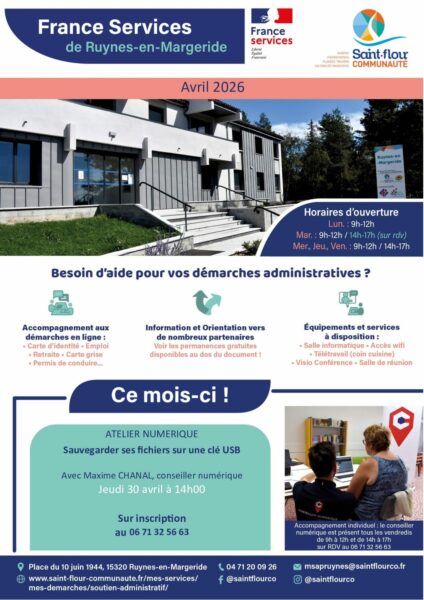 • Maison des services de Ruynes en Margeride – programme du mois de avril 2026